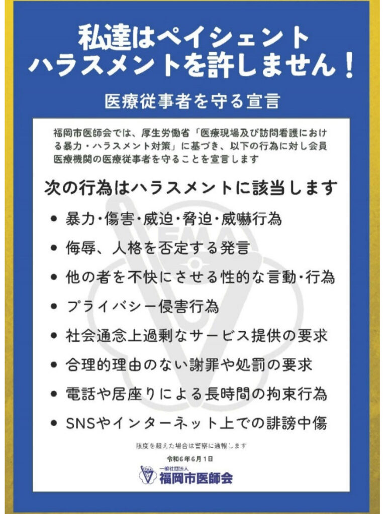 これらの行為は、安全で良質な医療提供を妨げ、職員の心身の健康や職場環境を損なうものです。